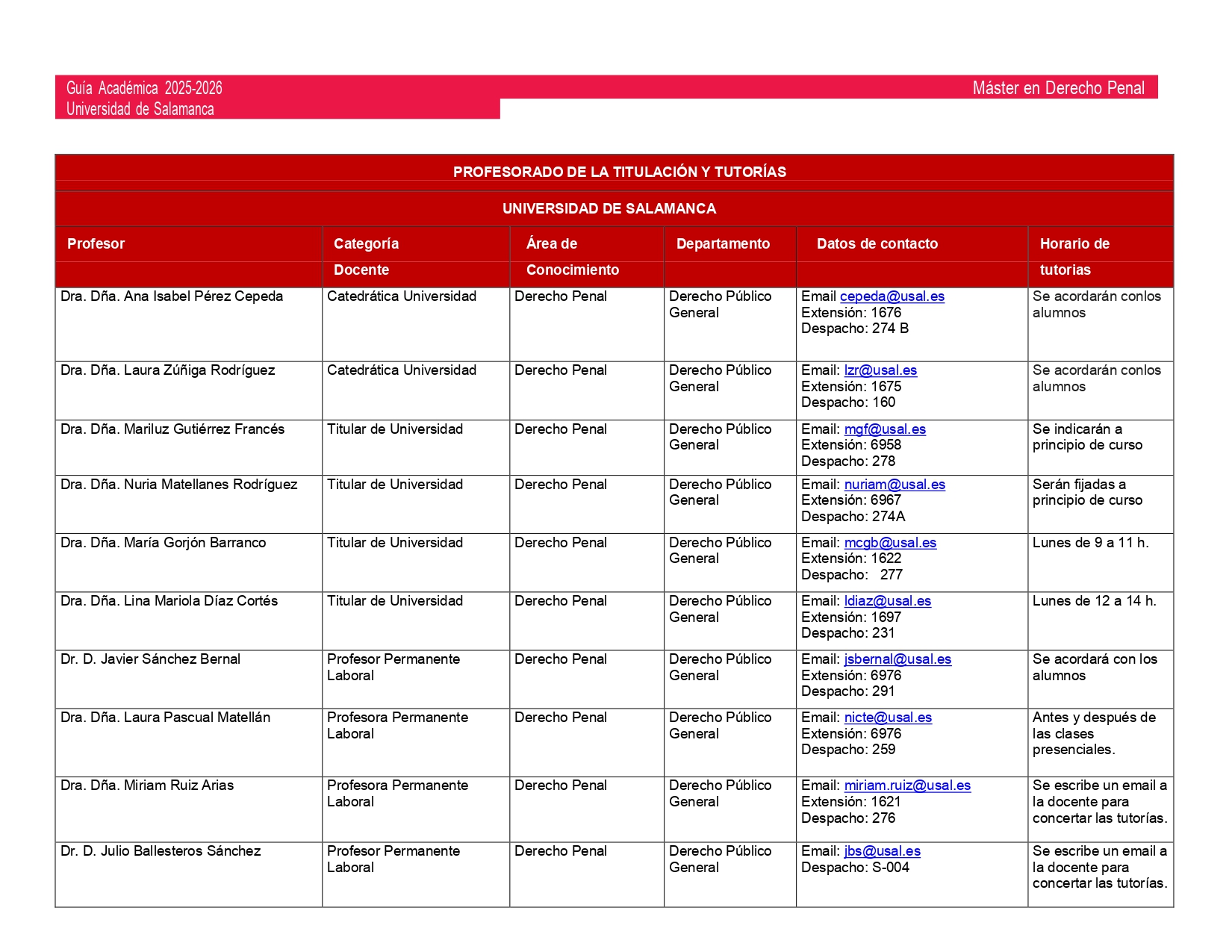 PROFESORADO DE LA TITULACIÓN Y TUTORÍAS